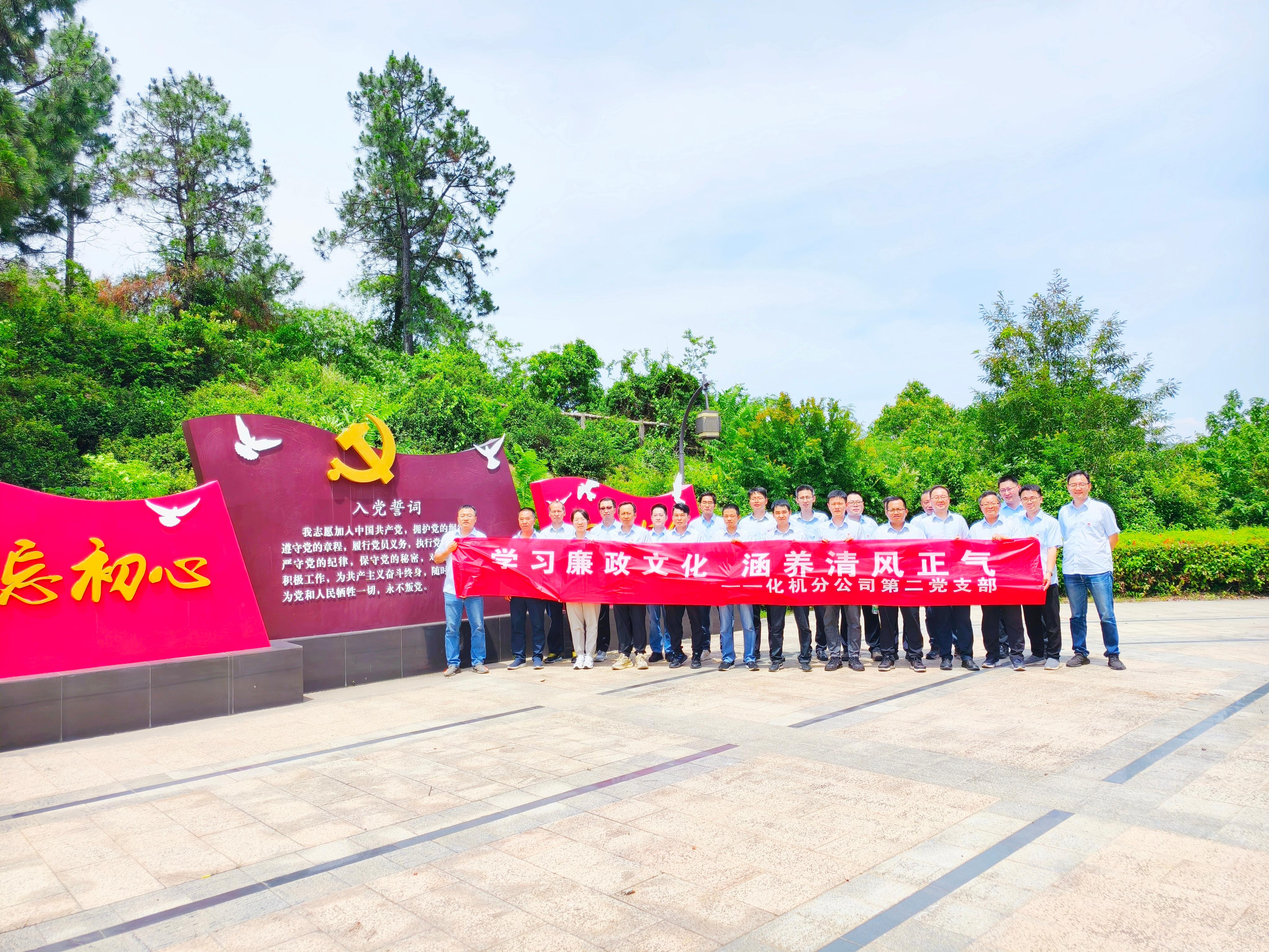 為推動黨紀學習教育常態化長效化,筑牢黨員干部廉潔思想防線,6月26日,化機分公司第二黨支部組織全體黨員赴溧水金牛山廉政文化公園開展“學習廉政文化 涵養清風正氣”主題黨日活動,通過沉浸式廉潔教育,強化紀律意識和使命擔當。